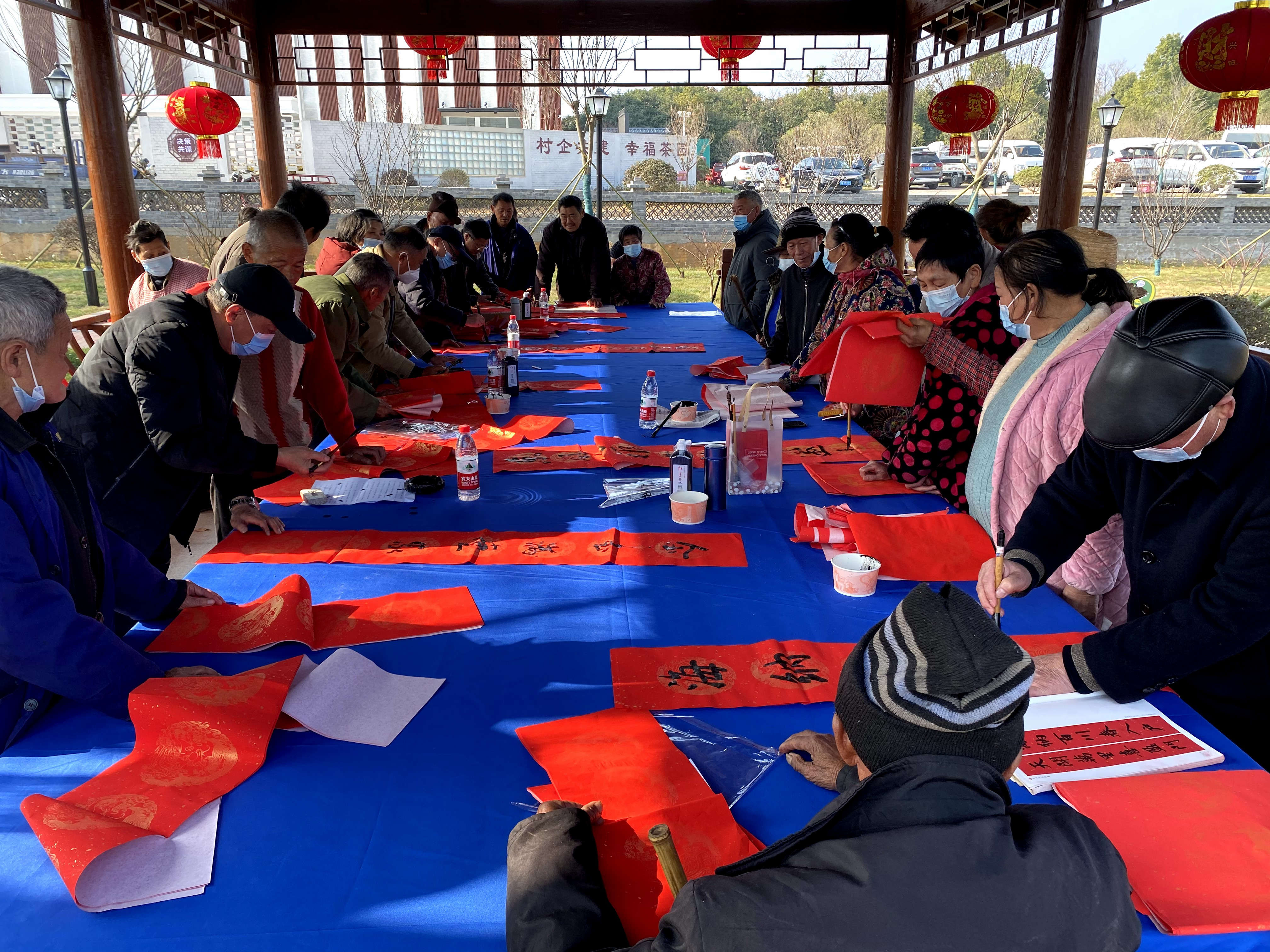 茶園村廣場,書法愛好者們自發(fā)組織免費寫春聯(lián),不少村民聞訊趕來,幫忙裁紙、倒墨、壓紙,“春風(fēng)又綠小康院,福字貼紅中國年”、“天增歲月人增壽,春滿乾坤福滿門”等一副副吉祥喜慶、翰墨飄香的春聯(lián)寫出了村民對美好生活的憧憬和期盼。