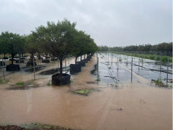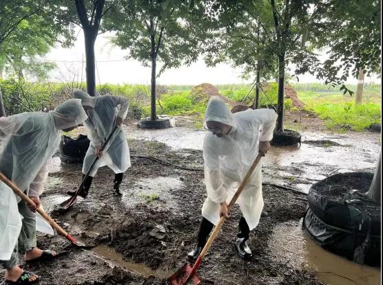 產(chǎn)業(yè)園內(nèi)排水渠道堵塞,多處林下區(qū)域積水,不同程度內(nèi)澇面積約有100多畝,在接到值班人員通知后,森態(tài)怡景黨支部帶領(lǐng)應(yīng)急小隊(duì)迅速趕赴現(xiàn)場(chǎng),疏通堵塞排灌溝渠的淤泥、垃圾,再使用汽油抽水機(jī)對(duì)排灌溝渠進(jìn)行導(dǎo)流,確?;貎?nèi)的漬水迅速排掉,縮短苗木被浸泡的時(shí)間,減輕漬澇危害。林下積水無(wú)法使用機(jī)械設(shè)施排出,應(yīng)急小隊(duì)采用鐵鍬進(jìn)行手動(dòng)排水、清理地表渣屑,并將被大風(fēng)吹倒的幼苗進(jìn)行扶苗、沖洗葉片上的泥漿,以恢復(fù)植株的正常生長(zhǎng),根部松動(dòng)的、根系外露的苗木及時(shí)培土覆蓋,用力壓實(shí)。經(jīng)過(guò)數(shù)個(gè)小時(shí)努力,基地現(xiàn)階段的積水已基本排完。