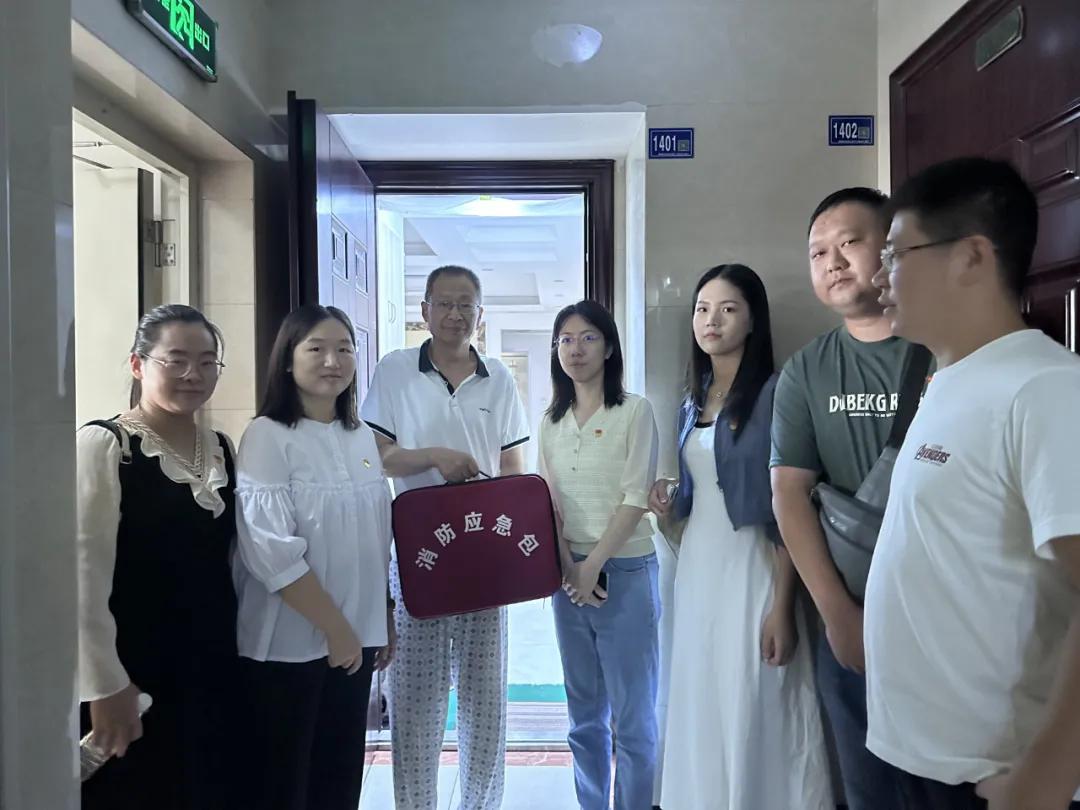 會后,武漢林業(yè)集團黨員代表和社區(qū)工作人員一同走訪了獨居老人和重點關愛人群,并向他們送上了一份特殊的禮物——消防應急包。贈送的消防應急包主要裝有防毒面具、小型高效水霧滅火器、滅火毯、安全錘、濕毛巾、逃生繩等物品。同時悉心為其講解應急包內工具的使用方法,提醒居民將應急包放在家里便于拿取的地方,幫助居民增強安全意識和自我保護意識,共同營造一個安全和諧的社區(qū)環(huán)境。